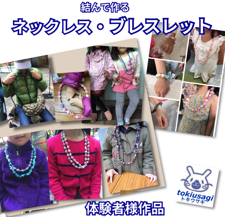 手芸・洋裁のプロクリエイター”トキウサギ”さんがブース出展!にぎわいでは、ドレスネックレスやメモスタンドデコなどのハンドメイド体験ワークショップを実施。お子様から大人まで楽しめます。